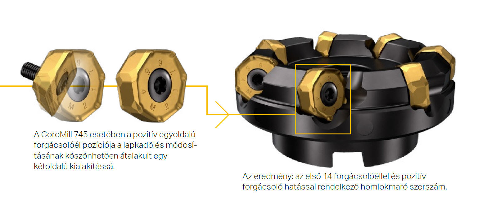 Az egyedi CoroMill® 745 maró titka a szabadalmaztatott lapkapozicionálási